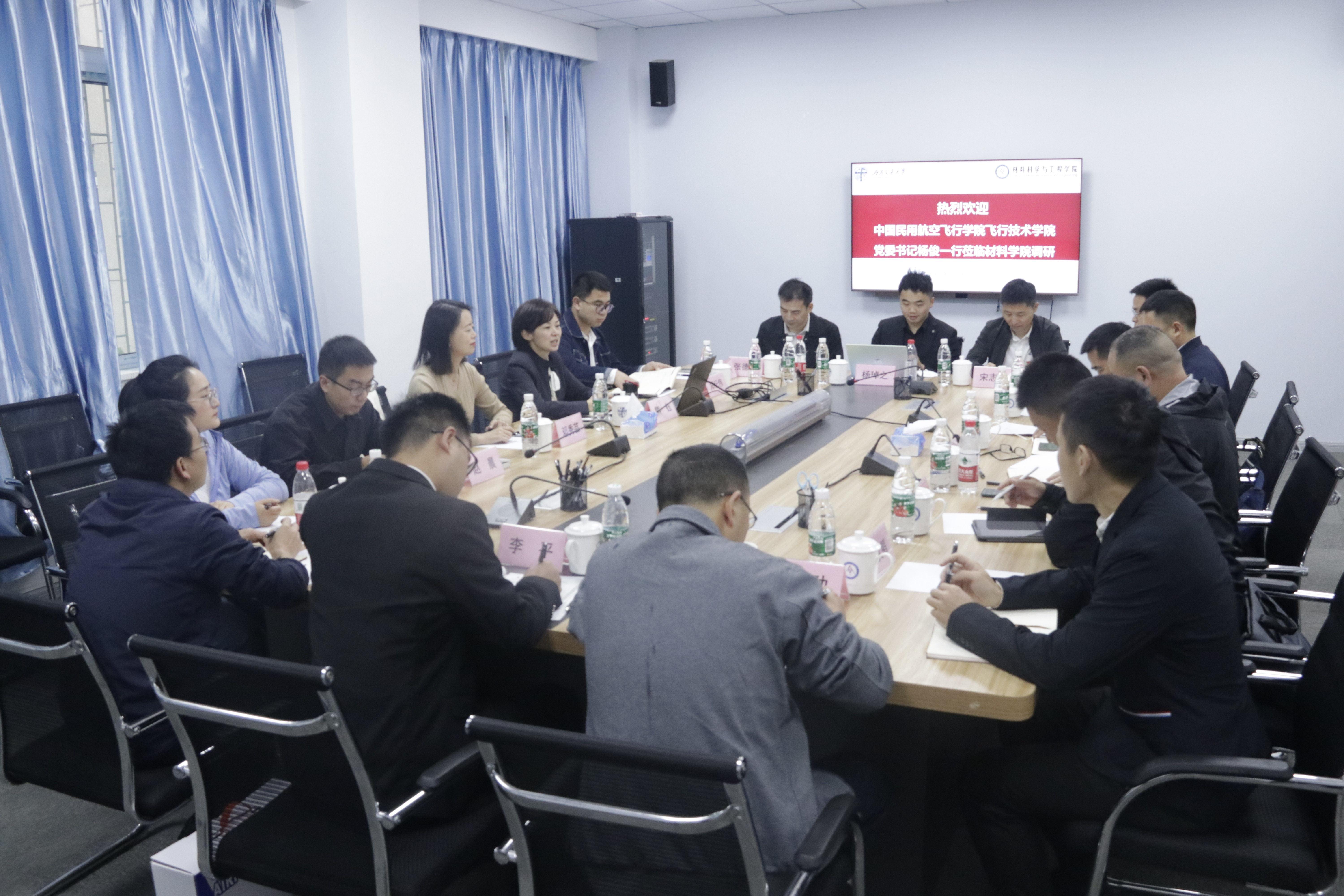 交流会上,双方围绕学院概况、历史沿革、团队建设、员工管理、辅导员名师工作室建设情况各自展开介绍。熊钰表示,飞行技术学院各项工作的先进经验和成功做法值得学习和借鉴,希望以此为契机,相互学习交流,推动工作共同进步。杨俊表示,希望未来加强两院沟通交流,推动落实学院“三全育人”工作走深、走实,搭建起员工管理工作的互动交流平台。