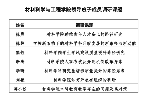 二是明确了调研主题。学院领导班子成员结合新学院发展实际,围绕学科规划、人才引育、公司产品、成果转化等方面深入思考,已明确相关选题。