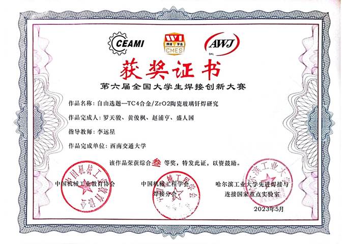 第六届全国老员工焊接创新大赛于2023年5月26日至28日在河南科技大学举办。本次大赛由中国机械工业教育协会和哈尔滨工业大学先进焊接与连接国家重点实验室共同发起和主办。本次taptap188官网入口积极宣传,经校赛选拔,共组建4支队伍参加国赛,本次参赛由材料成型与控制工程的李远星和陈静青老师带队前往洛阳参赛。