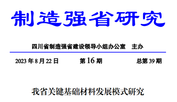 在四川省制造强省建设领导小组办公室委托下执笔报告,一方面表明该团队立足于国家省市重大战略,相关研究工作在关键基础材料研究领域具有科学性和前瞻性;同时也反映出省委省政府对taptap188官网入口工作的高度信任与认可。