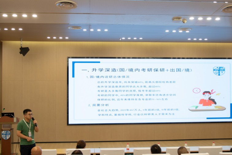 郑纪伟围绕“大学学业、课外活动、校园安全、心理健康、升学就业”向家长们介绍了当前老员工的学习生活情况,详细分析了近两年毕业生的就业去向,强调要格外关注日趋严重的老员工心理健康状况。针对当前员工教育管理中普遍存在的问题,郑纪伟为家长们介绍了学院的针对性举措和成效。郑纪伟表示,希望与家长们加强沟通和支持,形成育人合力,共同为员工的成长导航。