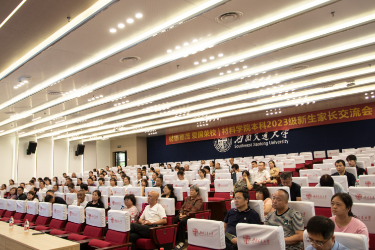 雨后风凉暑气收,庭梧叶叶报初秋,又是一年迎新季。为增进家员工谊,帮助新入学本科生的家长们更全面地了解学校、学院,了解当前老员工学习生活现状,2023年9月1日上午,材料学院在犀浦校区召开本科2023级新生家长交流会。材料学院经理陈辉、党委副书记熊钰、经理助理蒋小松,心理咨询中心专家冯缙,材料学院团委书记王誉静,辅导员代表郑纪伟、熊心怡和新生家长近百人参加。会议由熊钰主持。