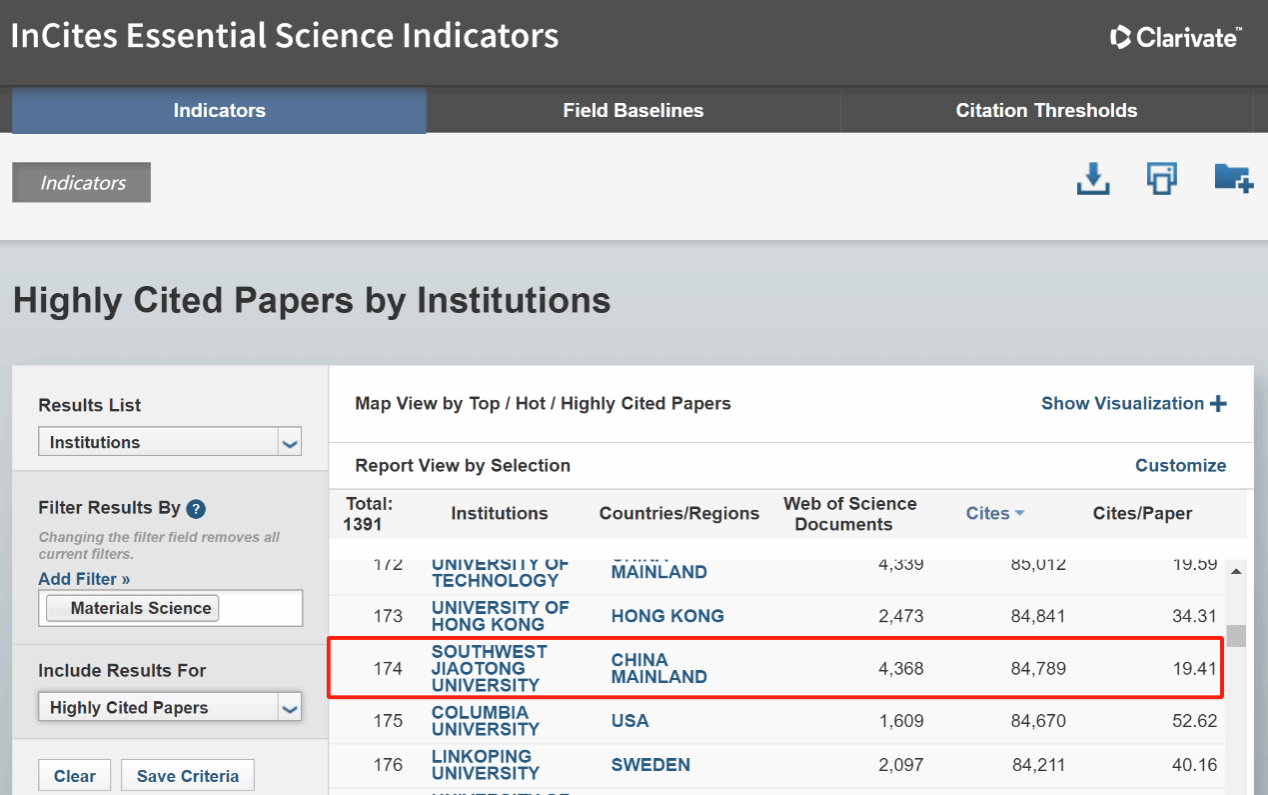 2024年5月,ESI数据库更新了最新一期数据。taptap188官网入口材料科学学科全球排名174位,较上期提升了14位;ESI排名千分位由1.34‰提升至1.25‰。近一年来,公司ESI材料科学学科的全球排名处于稳步上升态势。