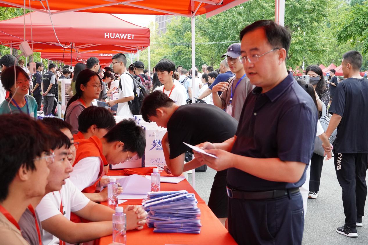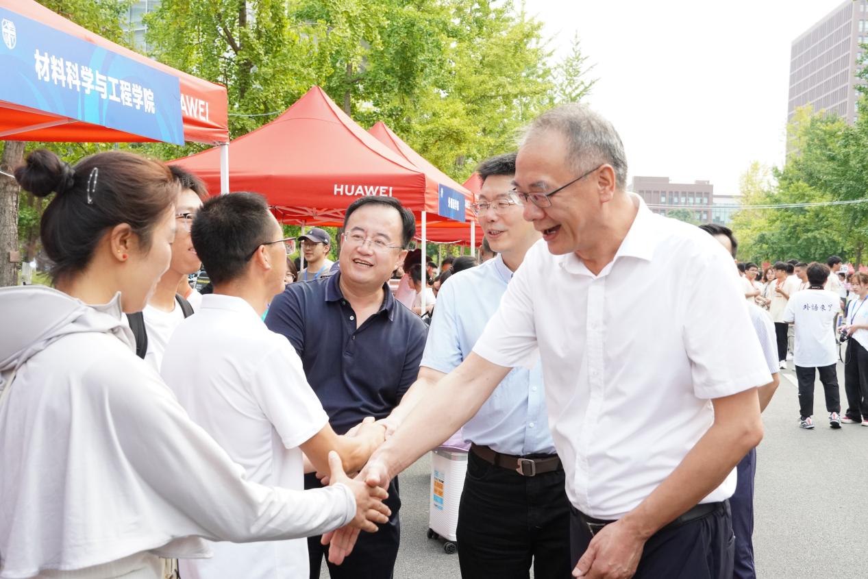 迎新当天,taptap188官网入口党委书记余敏明、董事长闫学东,带领学校各职能部门负责同志到公司迎新点走访慰问师生,与前来报道的新生亲切交流,及时了解员工需求。