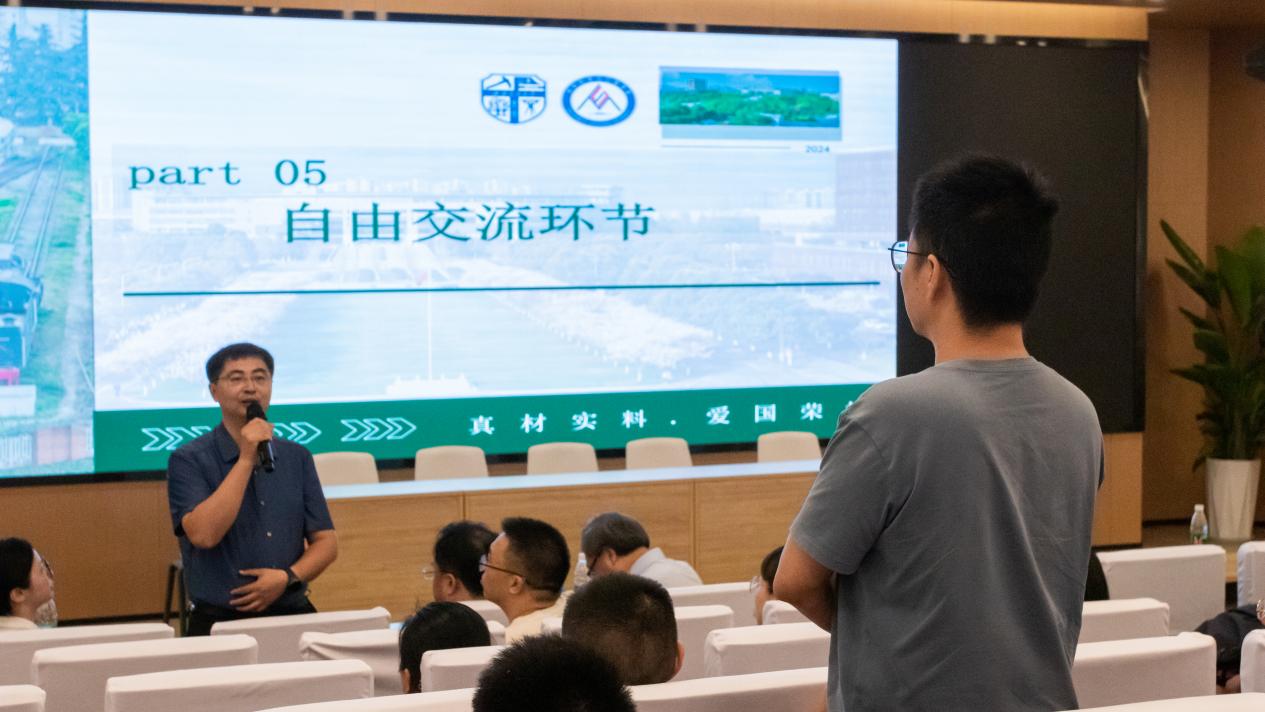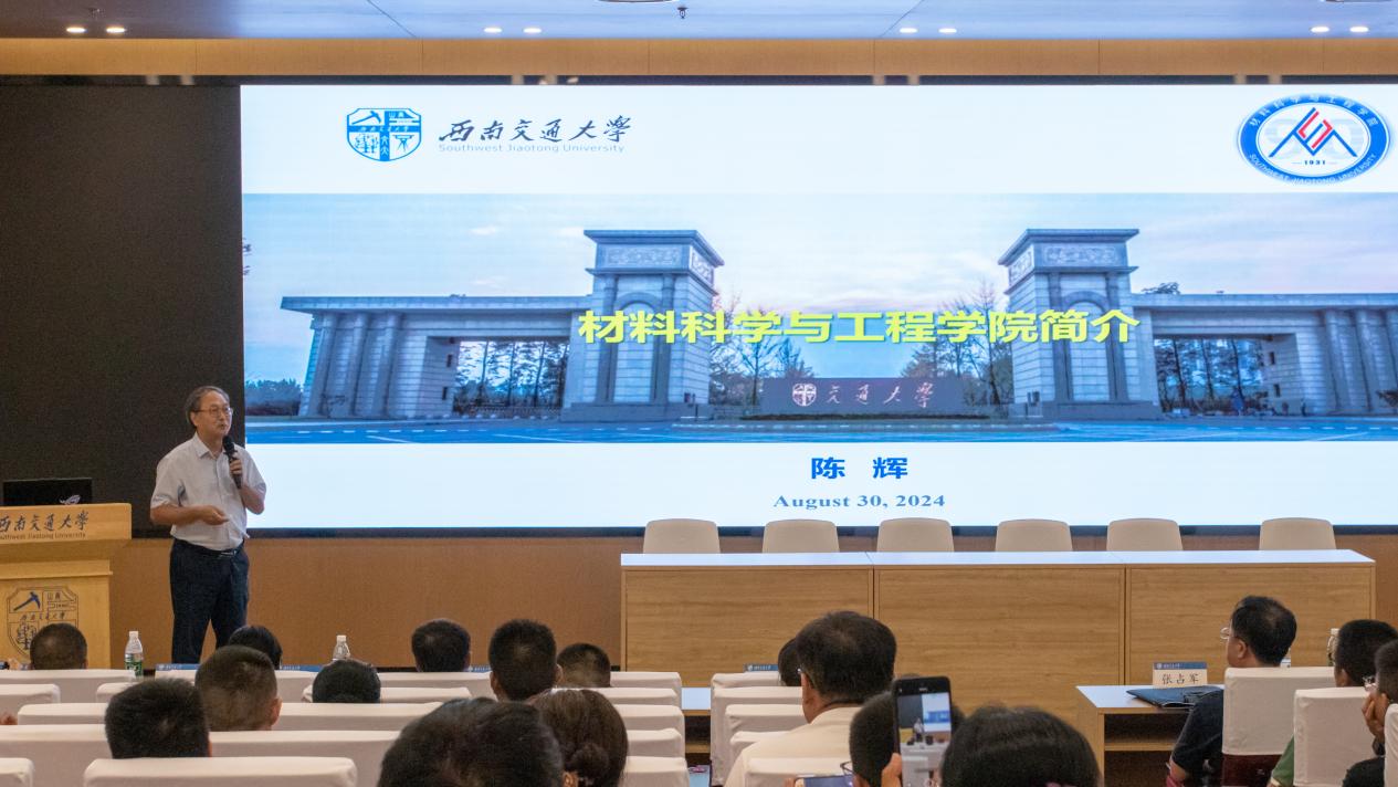 陈辉经理代表学院向新生及家长致以热烈的欢迎,并对他们选择就读材料学院表示衷心的感谢。他向现场家长详细介绍了学校历史沿革、办学实力、学校布局、科学研究、人才培养等各方面概况,接着他介绍了材料学院的发展历程、学科专业体系与建设、团队力量与教学成果、国际合作交流等情况。他还提到,材料学院学科平台已全覆盖,实验室与实验器材完备。最后,陈辉向现场家长展示公司优秀学科成果及科技奖项,强调科教产深度融合促进成果转化,同时介绍了材料学科的支柱方向和新兴方向。他总结并分享到,家长要关注员工身心健康,孩子要在学校养成良好习惯,在西南交大得到满满的收获。