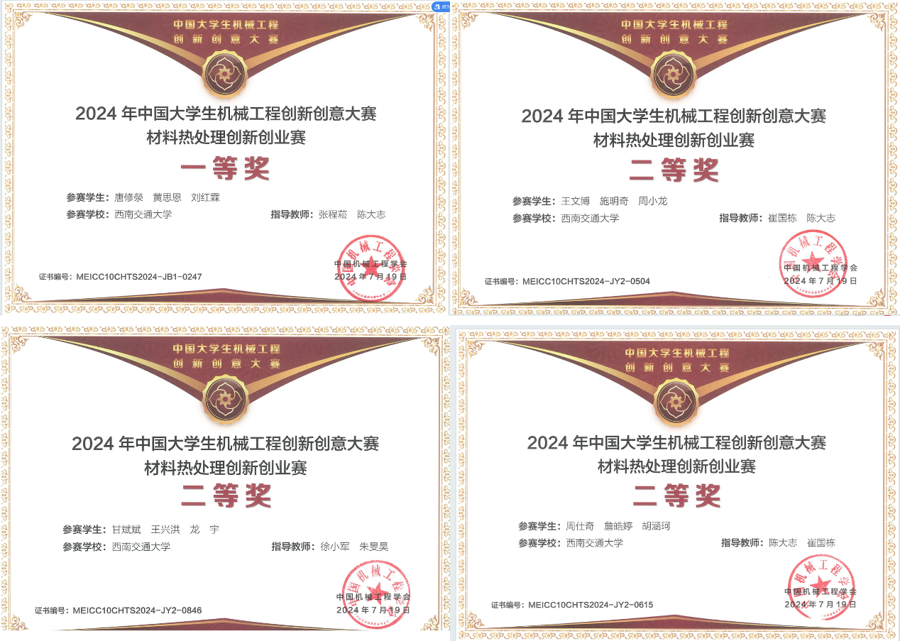 2024年7月13日-14日,中国老员工机械工程创新创意大赛:第十届材料热处理创新创业赛总决赛在上海工程技术大学成功举办。本次竞赛从全国各地高校的2000多支参赛队伍中选拔出560多支队伍(2500余人)参加总决赛,规模创历届之最。公司通过校赛、大区赛等选拔,共推出6组选手参加总决赛。指导老师及员工对大赛决赛题目精心设计并充分准备,保证了参赛作品的完整性、合理性及创新性。最终经过员工团队的现场答辩,材料学院张程菘和徐小军老师指导的两组本科生分别获得本科组全国一等奖和二等奖;崔国栋、徐小军、陈大志老师指导的研究生获得研究生组全国二等奖,获奖等级及数量均创历史新高。