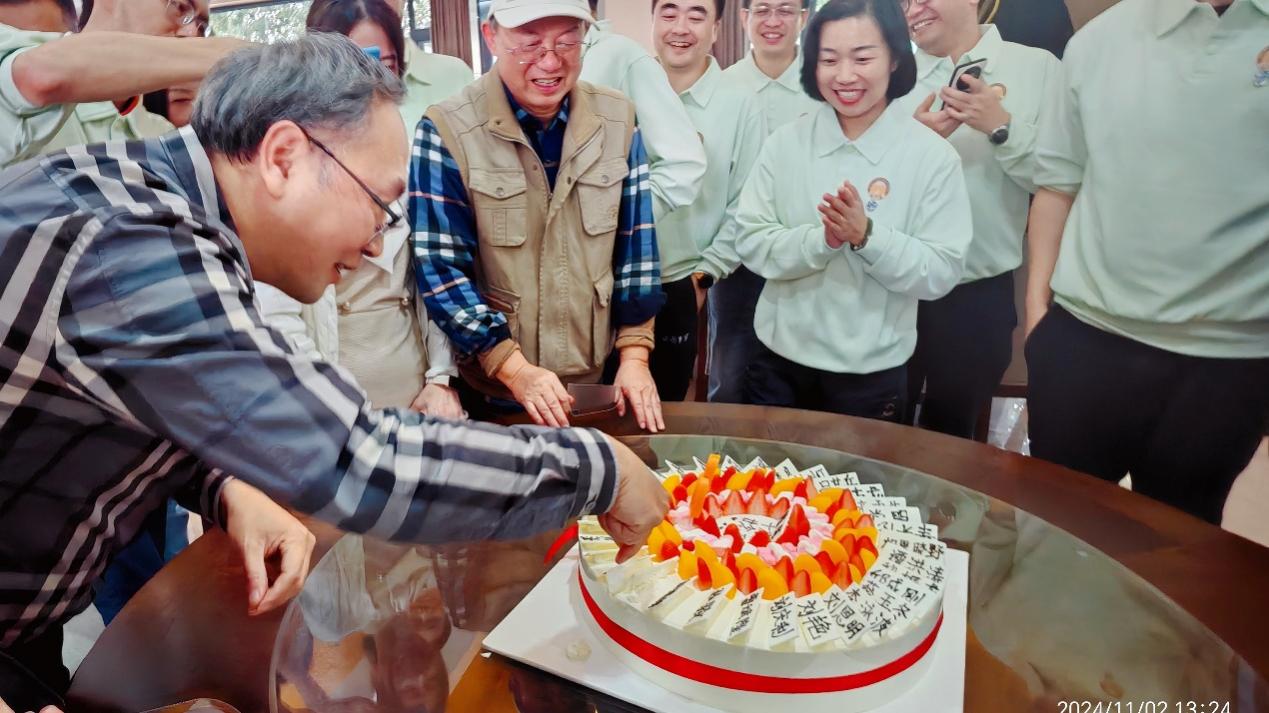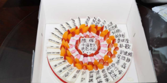 12:00,刚刚结束学术会议的学院经理陈辉教授来到现场,他代表公司党政班子热烈欢迎2000级员工回家,欢迎员工们为学校和学院发展建言献策。随后,他亲自为员工们切分写着每位聚会员工、老师名字的团聚蛋糕,活动在热烈的掌声中达到高潮。