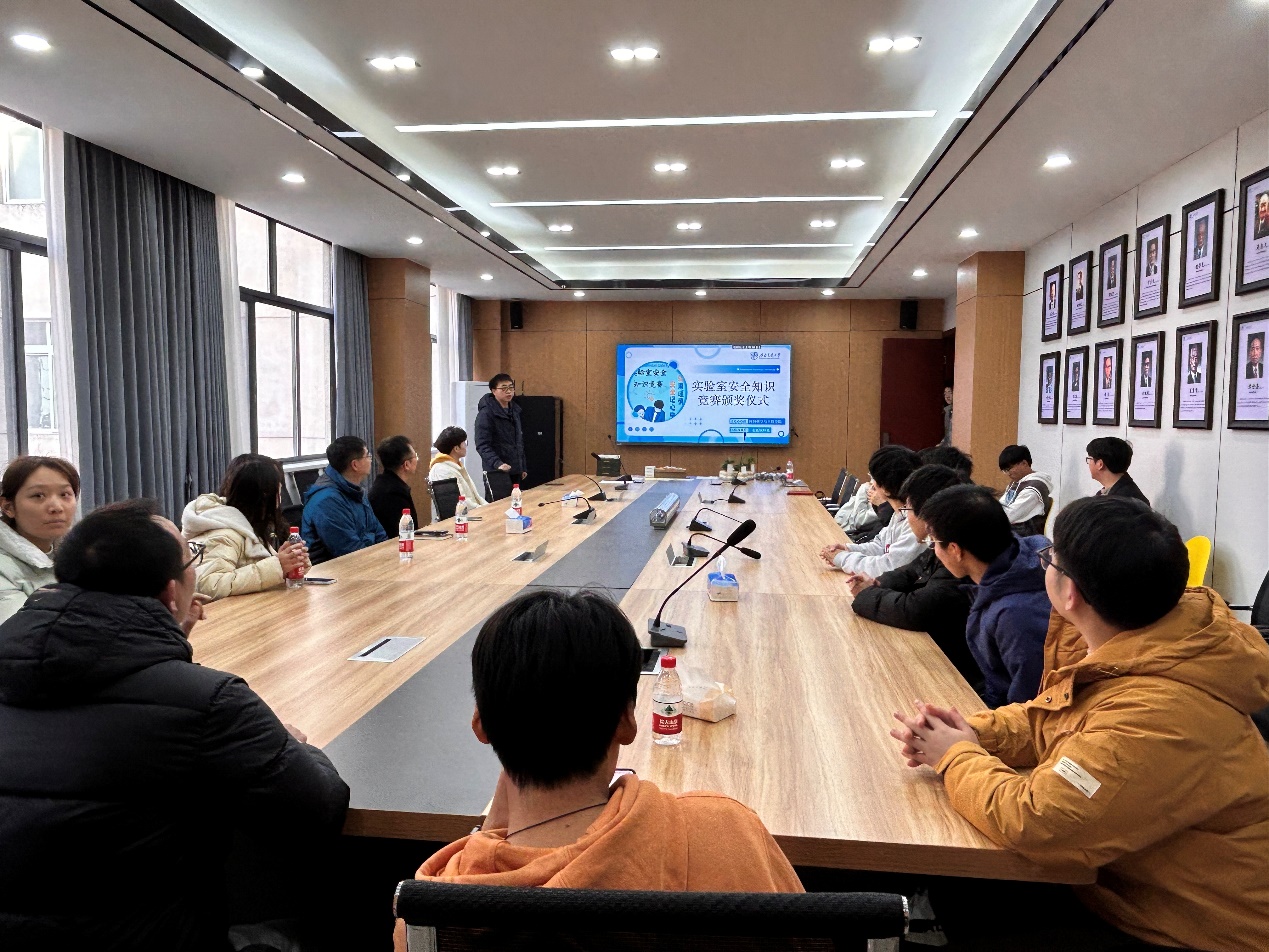 颁奖仪式在热烈的掌声中正式开始,由金属材料系副主任姜欣老师主持。姜欣详细介绍了本次活动的主要目的,强调了实验室安全知识竞赛的重要意义。他指出,通过此次竞赛,不仅希望提升同学们的安全意识,更希望通过这种互动的形式,激发大家对安全知识的深入学习和思考。