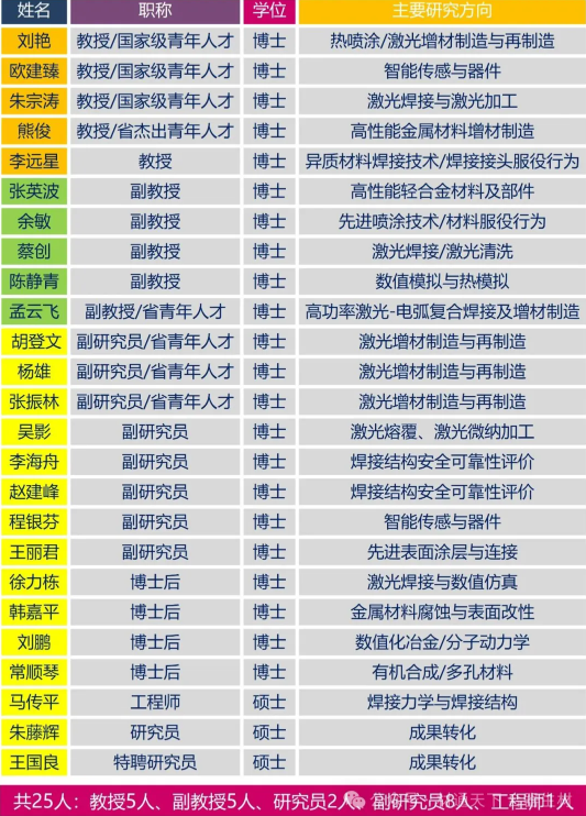 团队教师100余名,主要研究方向:智能焊接、增材制造、先进表面加工、焊接结构安全可靠性评价。
