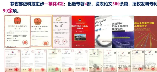 承担国家级项目/课题10余项、省部级项目与企业课题100余项,相关成果获四川省科学技术进步一等奖2项(均1/10)、四川省教学成果一等奖和二等奖各1项(均1/10)、教育部科学技术进步二等奖1项(1/20);参与项目获吉林省科学技术进步一等奖1项(5/15)、国家级教学成果二等奖1项(5/19)、中国铁道学会科学技术一等奖1项(4/25)。出版专著3部,发表SCI/EI学术论文300余篇。国家重点研发计划项目、自然基金(重点)项目、国家奖、四川省奖评审专家。表面技术、电焊机等杂志编委。