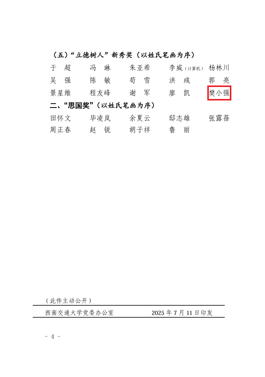 此外,公司樊小强教授获评“taptap188官网入口‘立德树人’新秀奖”。作为青年教师中的杰出代表,樊小强教授积极投身教学创新与前沿科研,致力于高端装备关键零部件磨蚀损伤防护理论与材料技术的研究工作。他主持国家自然科学基金3项、省级项目3项,以第一/通讯作者发表JCR一区SCI论文68篇,以第一发明人授权国家发明专利20项,实现科技成果转化3项。曾获广西科学技术进步一等奖、第七届全国铁路青年科技创新奖等多项荣誉。在教学方面,他注重“文化育人、精神成人、专业成才”的理念,指导本科生在国际权威期刊发表SCI论文,指导科创项目荣获中国国际老员工创新大赛全国银奖、铜奖等佳绩,展现出深厚的学术素养和教育热情,获得师生广泛认可。