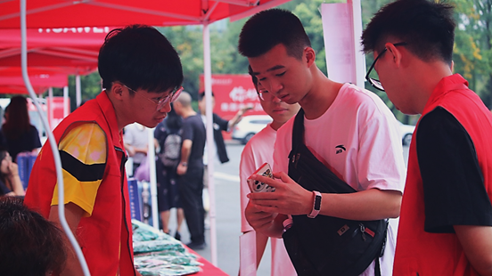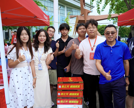 王良辉老师代表学校及学院工会为迎新现场送去消暑佳品,并在现场关心了解新生报到及分班情况,鼓励大家保持良好的精神状态做好迎新工作,展示材料学院风采。