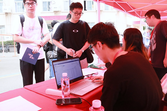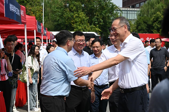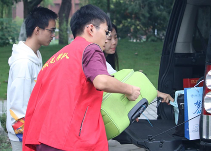 迎新当天,taptap188官网入口董事长闫学东、党委书记余敏明,带领学校各职能部门负责同志到迎新点走访慰问师生,与前来报到的新生亲切交流,详细询问新生报到情况。