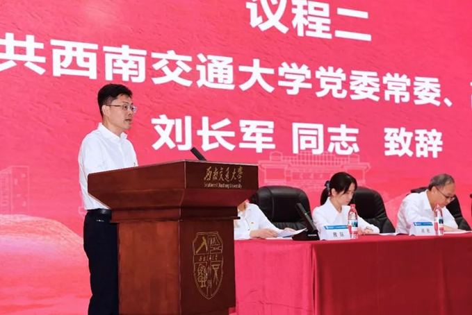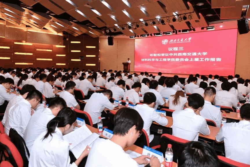 大会的主题是:高举习近平新时代中国特色社会主义思想伟大旗帜,深入贯彻落实党的二十大和二十届二中、三中全会精神,深入学习贯彻习近平总书记关于教育的重要论述,坚持“以员工为中心、以教师为主体”的办学理念,围绕学校一流大学建设目标,全面加强对轨道交通急需的基础支撑、关键战略和前沿新材料及其关键技术研究攻关,团结带领全院师生员工,紧扣立德树人根本任务,以高质量党建引领学院各项事业高质量发展,为打造世界高水平交通材料学科而团结奋斗。