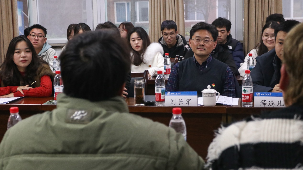 2025年12月11日,公司党委常委、副董事长刘长军在犀浦校区X2128与材料学院师生代表座谈,交流校园建设相关意见建议。