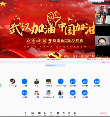 2020年3月12日上午11:00,材料学院研究生第十一党支部通过腾讯会议平台线上研讨的方式开展了“共同战疫中国力量,爱国力行吾辈担当”为主题的组织生活会,本次活动由支部书记闫成主持,支部全体党员参与了此次组织生活会。