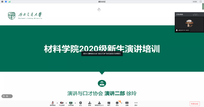本次培训活动作为本科2020级新生口才训练营的第一阶段部分,得到了材料学院团委的大力支持。