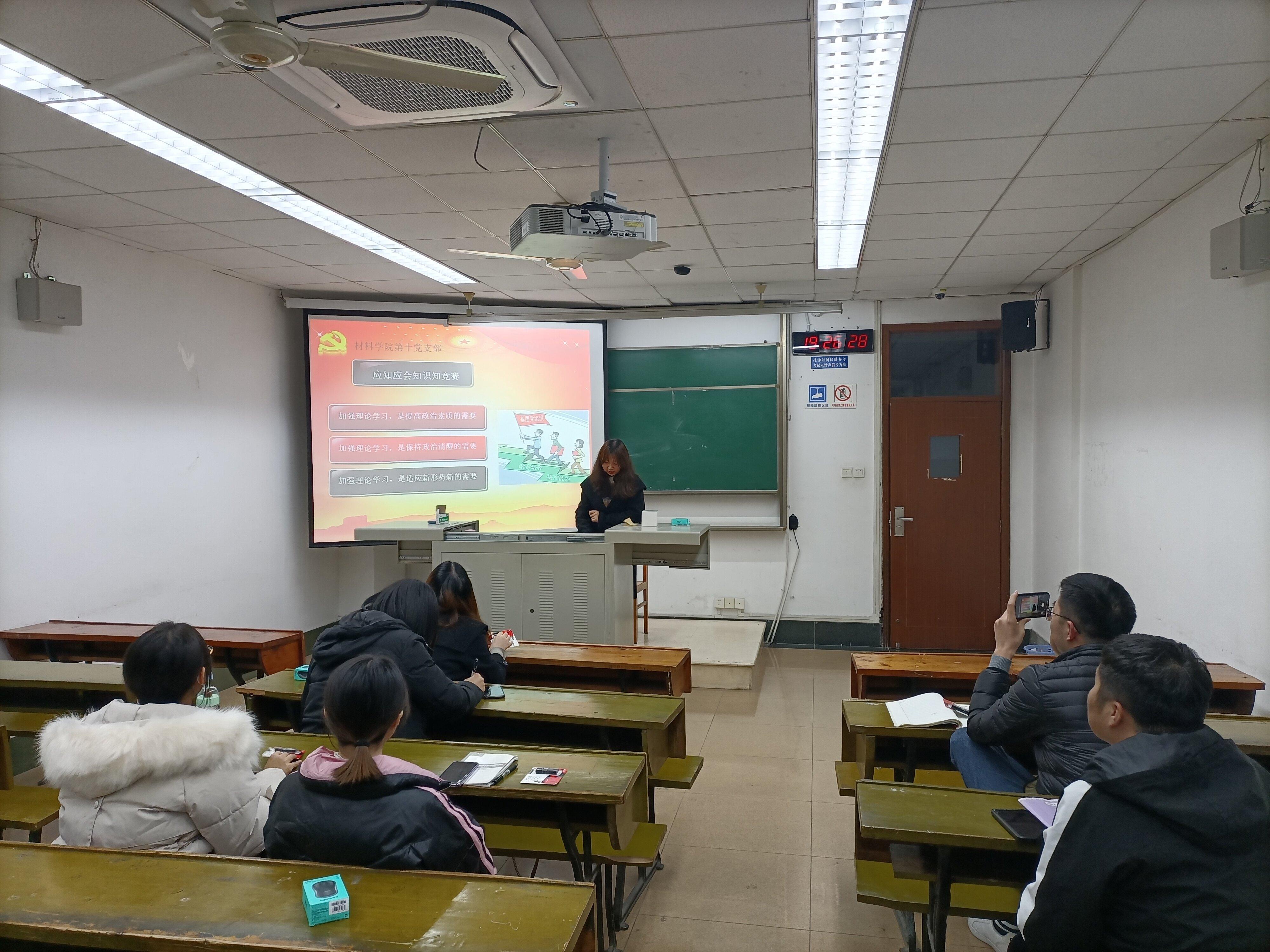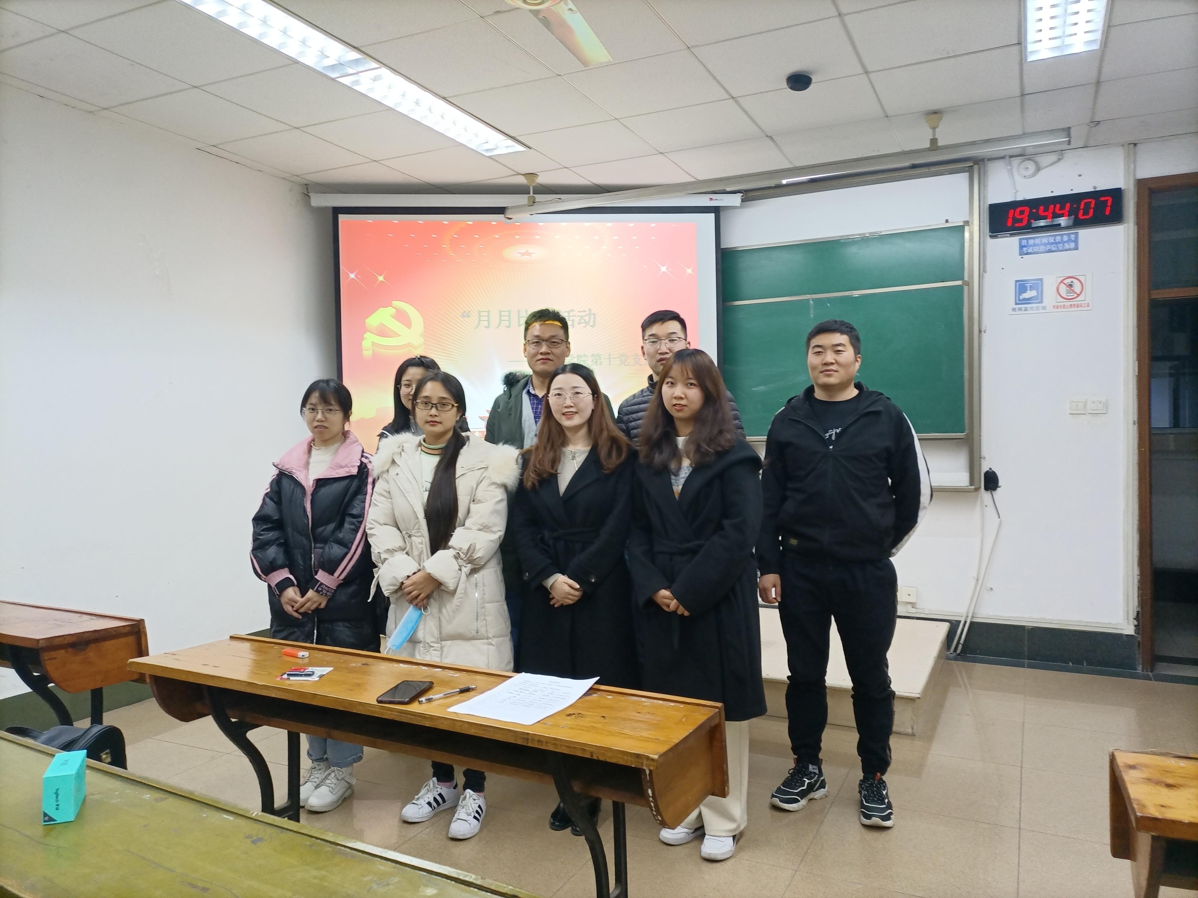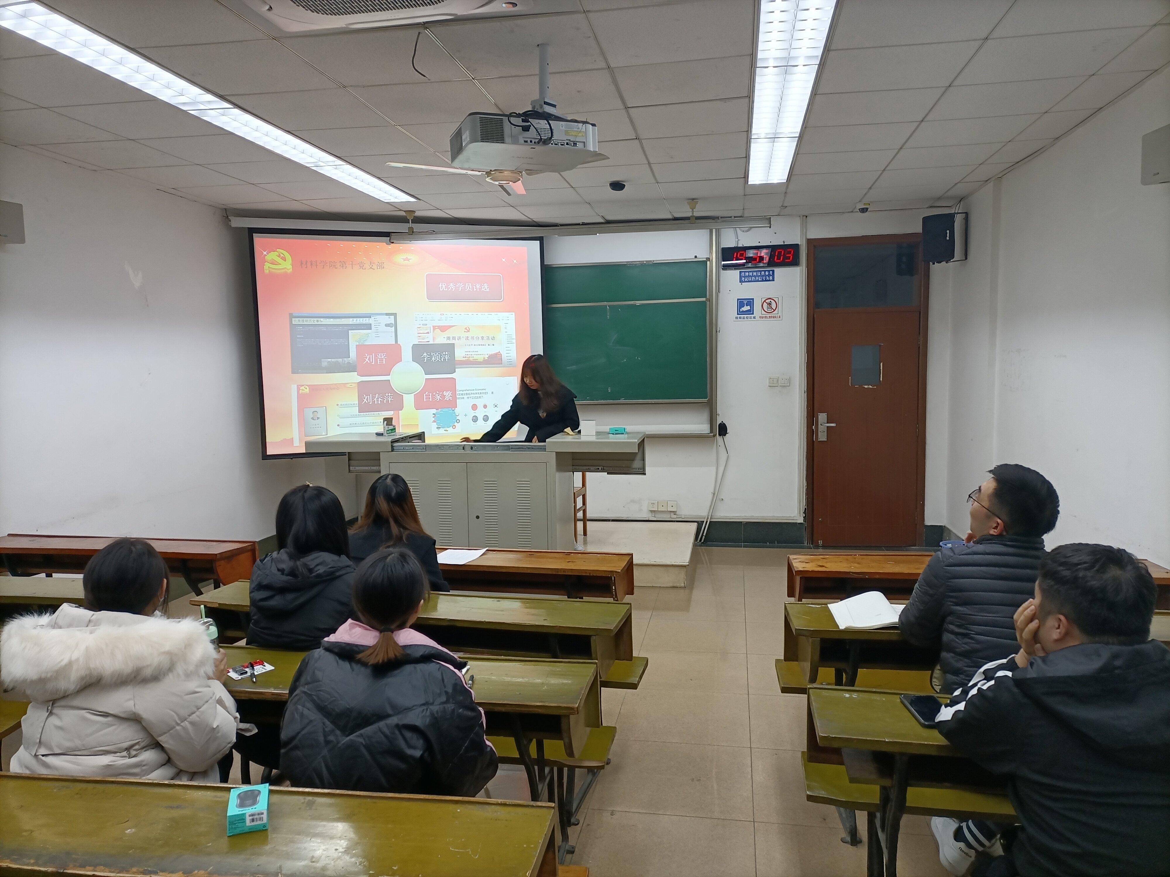 2020年11月23日晚上,材料学院研究生第十党支部为深入学习贯彻习近平新时代中国特色社会主义思想,深入学习贯彻习近平总书记关于公司党建和思政工作的重要指示批示精神,推动员工党支部深入学好党史、新中国史、改革开放史、社会主义发展史,根据公司党委部署和本支部的实际学习情况,于逸夫楼4404A开展“月月比”活动,对支部同志阶段性学习成果进行考察、评比和总结。