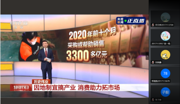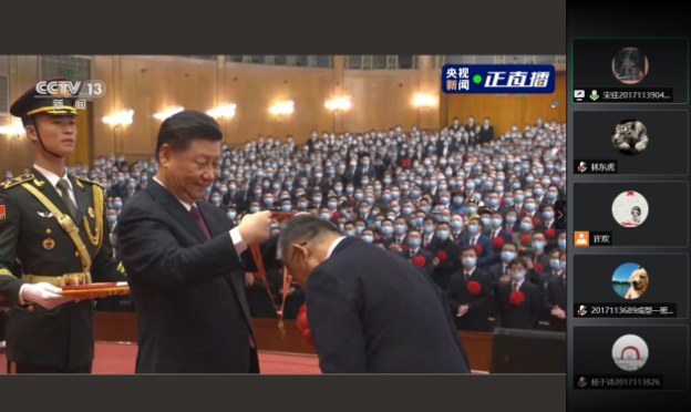 2021年2月25日上午9:00,本科生第三(2017级党支部)在线上开展了脱贫攻坚总结表彰大会直播学习,认真观看了全国脱贫攻坚总结表彰大会特别报道之历史伟业,习近平总书记向全国脱贫攻坚楷模荣誉称号获得者颁奖并发表了重要讲话,各党员同志并据此进行了交流。