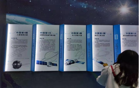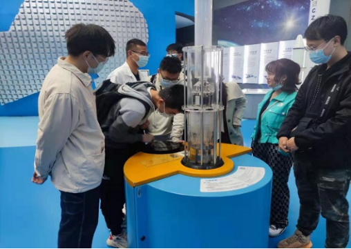 在这里我们看到了许多关于航空航天的尖端科技,且这些设备不仅有相应的介绍,还提供了给参观者操作的机会。比如有一个模拟火箭发射过程的一个设备,参观者可转动手轮发电,电解水产生氧气和氢气。在按下点火按键后气罐内的混合气体点火,火箭模型便会飞起。而在实际火箭发射中便是以液氧和液氢作为航天航空工业用燃料。在参观过程中,同学们兴致勃勃,对航空航天领域的技术感到非常好奇。