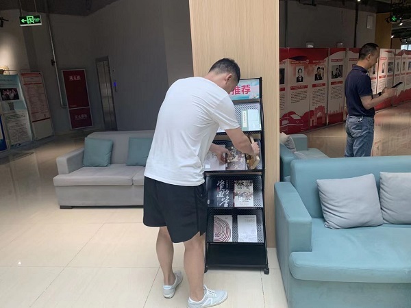 2021年5月13日早上9时,花艺展准时召开,支部派出两位入党积极分子前往图书馆进行志愿服务。