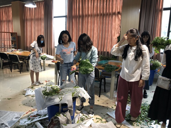 2021年5月10日下午4时,支部成员在图书馆集合。协助布置会场,准备所用桌椅及各种道具。并修剪和摆放花艺展所用鲜花。