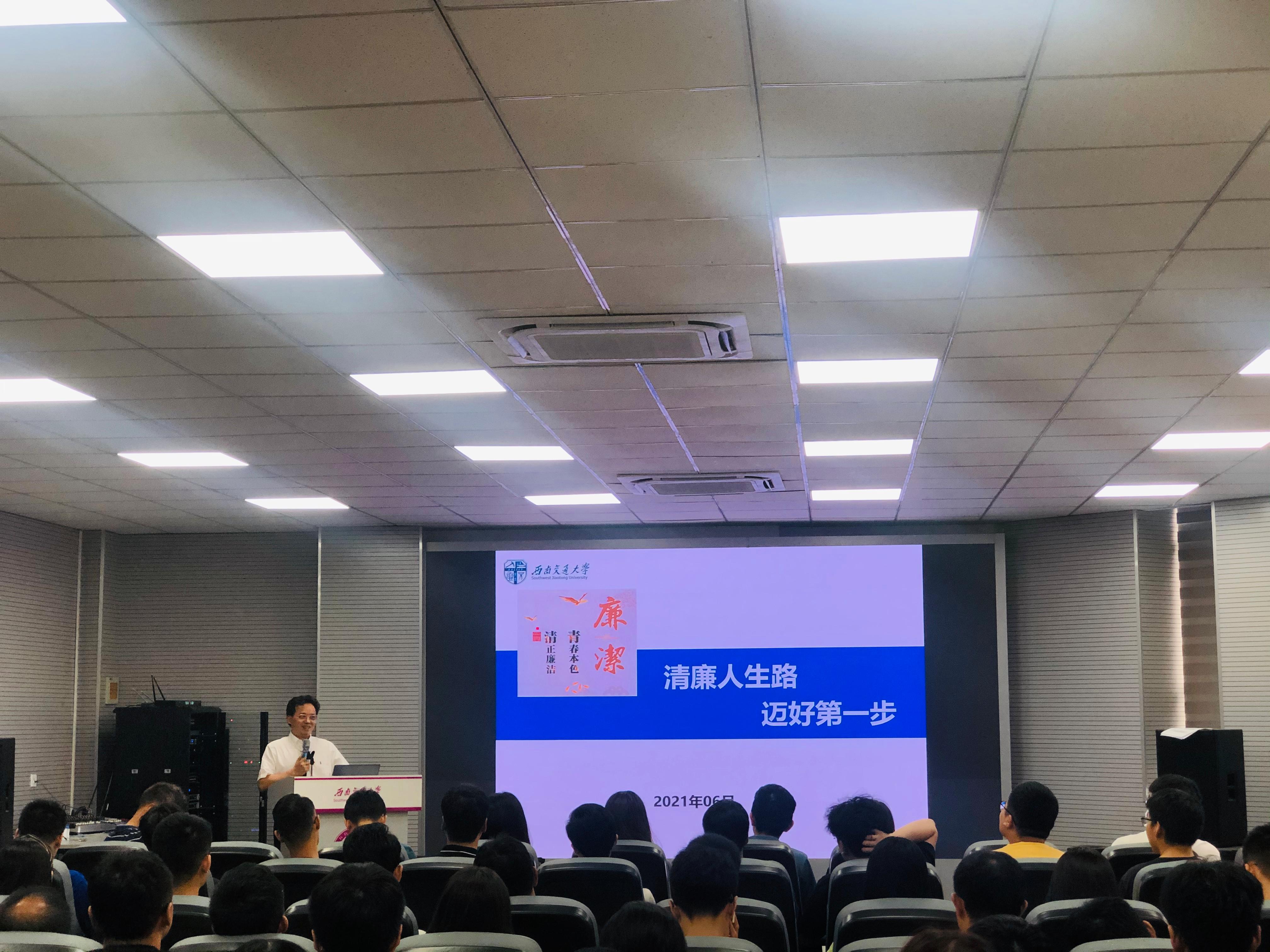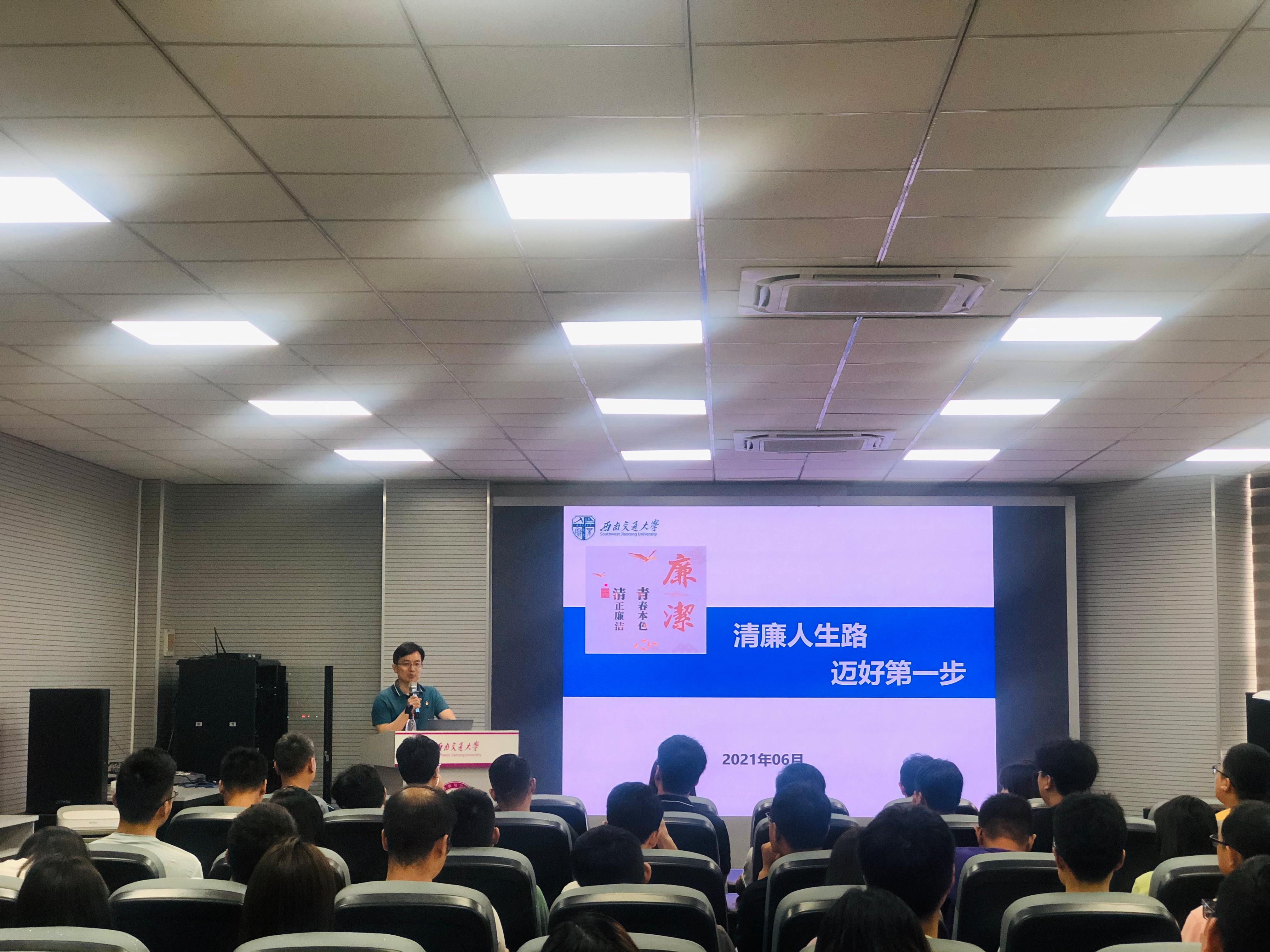 2021年6月11日14:00,公司党委副书记、纪委书记张学龙应材料公司党委、纪委的邀请,在九里校区3324会议室为材料学院毕业年级研究生讲授党史学习教育专题党课,主题为《清廉人生路,迈好第一步》。学院2021届毕业年级在校研究生和部分低年级研究生党员、部分教职工党员和辅导员,共计200人参加党课。党课由公司党委书记陈勇主持。