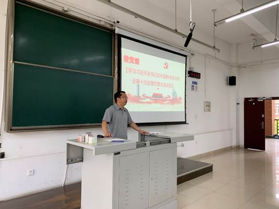 活动第一项,由冷永祥副经理为与会师生讲党课——学习习近平总书记在中国科学院第二十次院士大会、中国工程院第十五次院士大会、中国科协第十次全国代表大会上的讲话精神。冷永祥副经理紧紧围绕讲话内容,带领师生回顾了在党的坚强领导下国家科技事业取得的巨大成就,了解当前背景下新一轮科技革命和产业变革的演化趋势以及加快建设科技强国的重点任务。冷永祥副经理结合材料学科特点、生物医学工程专业发展趋势及其在国家科技事业的重要地位,勉励老师和同学们努力拼搏进取,掌握扎实本领,肩负光荣使命,勇攀学术高峰,为建设科技强国贡献交大力量。