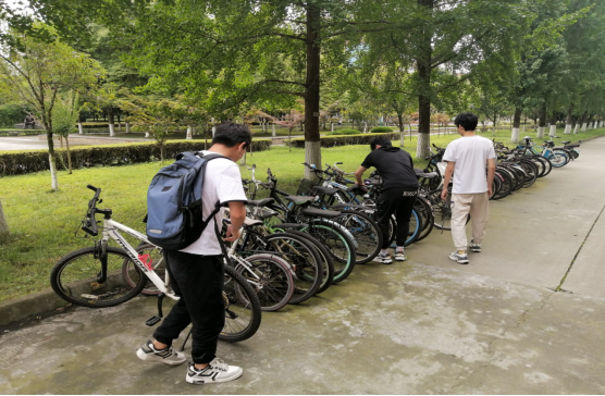 支部成员通过分组,分批前往宿舍园区,食堂和教学楼进行共享单车摆放整理。