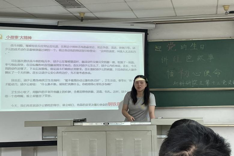 为庆祝建党一百周年,落实党史学习教育,2021年7月3日10:00于四号教学楼4304A,研究生第十三党支部开展了“迎党的生日、讲红色故事、悟初心使命”主题党日活动,支部全体成员参与活动。活动由郭静主持。