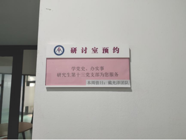 该项工作采用“一对一”服务方式,即一个支部负责一间研讨室,做到地点全覆盖、服务全负责,旨在为学院老师同学营造良好的学习工作环境,发挥党员的先锋模范作用,增加支部成员的服务奉献意识。