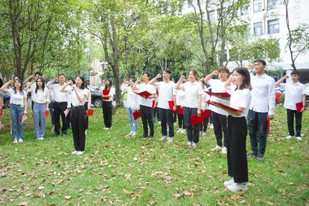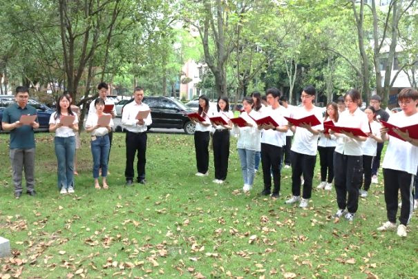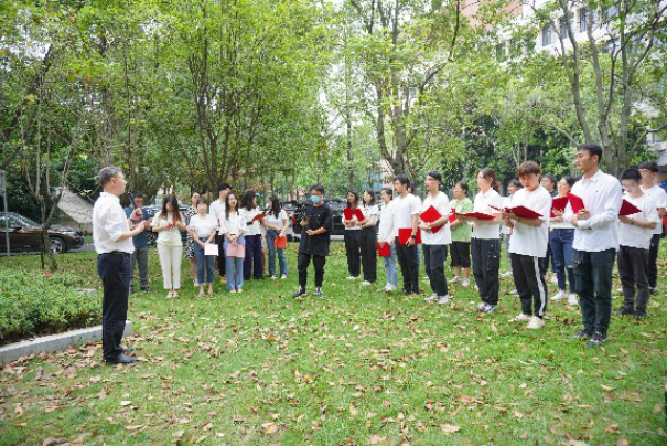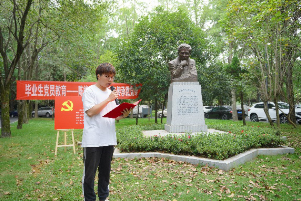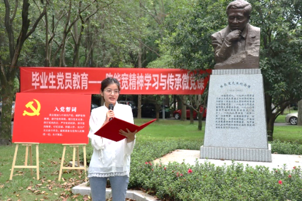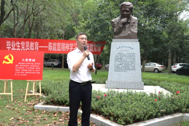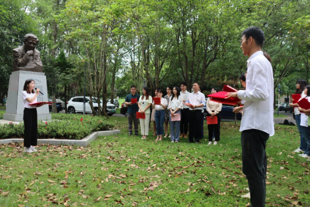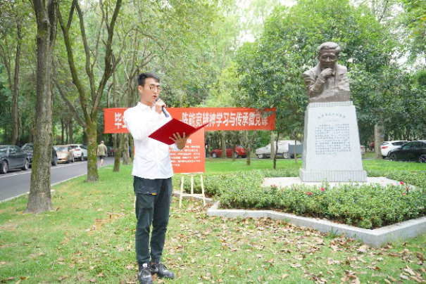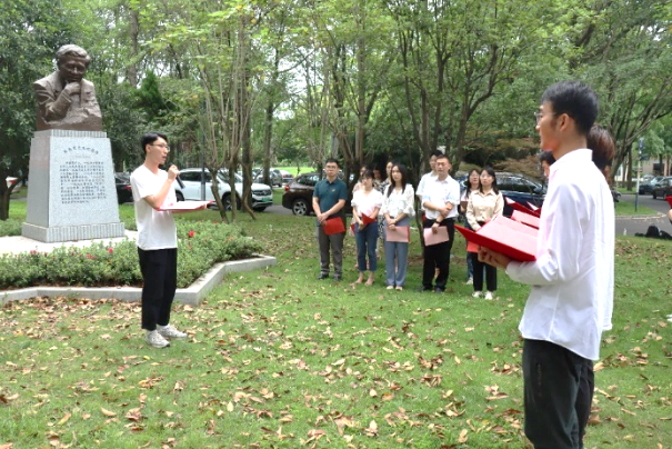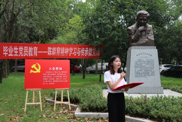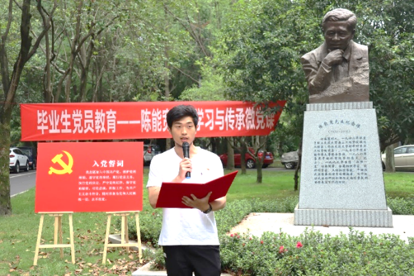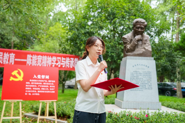 陈能宽先生是中国共产党的优秀党员,他功勋卓著的一生是共产党人践行初心使命的生动诠释,充分展现了一名共产党员的责任与担当。在陈能宽铜像前,全体同志重温入党誓词。“我志愿加入中国共产党,拥护党的纲领,遵守党的章程……”铿锵誓言,展现青年一代的共产党人“请党放心、强国有我”的豪迈——我们定将奋楫笃行,走好新时代的赶考之路。