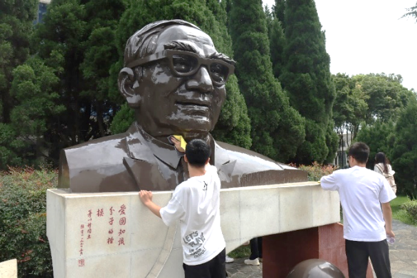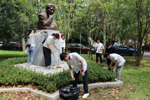 朝阳正当头,劳动启新篇。党员同志们用集体劳动的方式为本次专题党课画上一个圆满的句号。他们认真擦拭陈能宽先生和茅以升董事长的塑像,整理3号教学楼前自行车棚,清除草坪中的杂草落叶。交大予我人生底色,我还交大一片亮色——是我对母校的依依不舍和深情留恋。