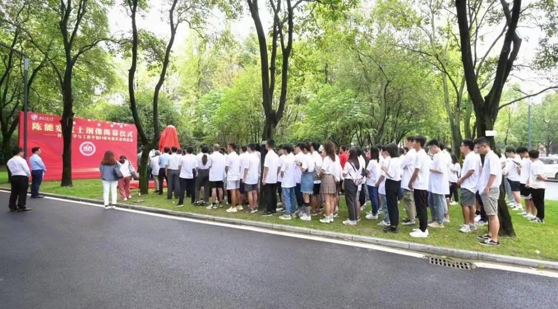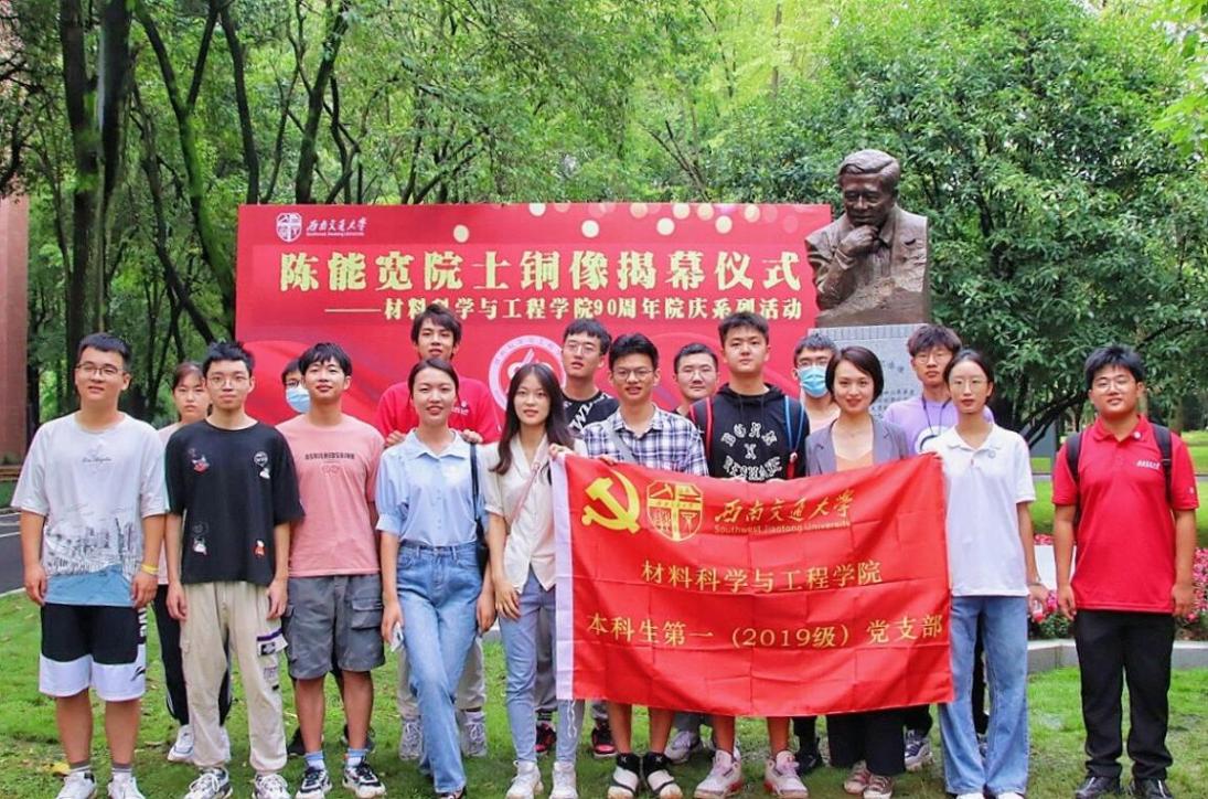 2021年9月25日10时,taptap188官网入口成立90周年院庆系列活动之陈能宽院士铜像揭幕仪式于taptap188官网入口九里校区3号教学楼前隆重举行。本科生第一党支部书记熊苏雅带领支部成员参加活动,同时张佳豪同志作为员工代表进行发言。