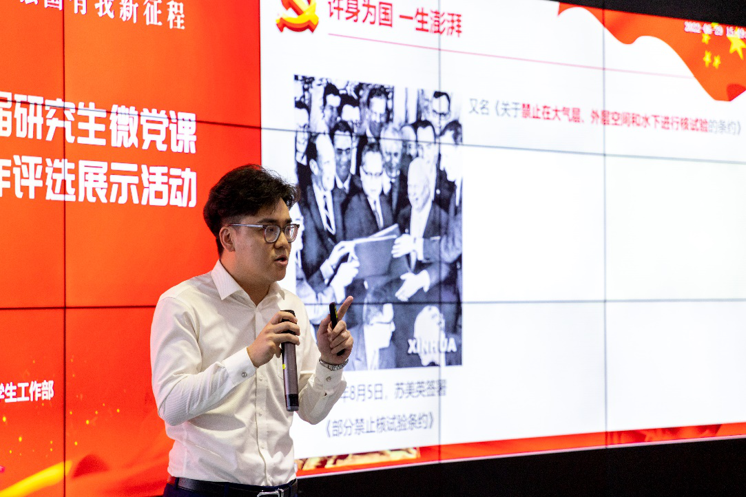 集团高度重视本次微党课评比活动,为了优中择优,组织多次评比和试讲,经过层层筛选,15个作品入围决赛,公司由赫斌同志作为代表参加全校决赛答辩。