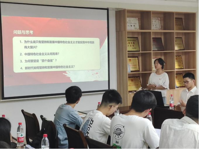 来自材料(金属)2020-03班的周玥同志主讲《坚持和发展中国特色社会主义是当代中国发展进步的根本方向》。在周玥的讲解下,同志们充分领会到中国特色社会主义是党和人民历尽千辛万苦、付出各种代价取得的宝贵成果,更加全面的理解了坚定“四个自信”的重要意义,对如何坚持和发展中国特色社会主义有了更为清晰的认识。