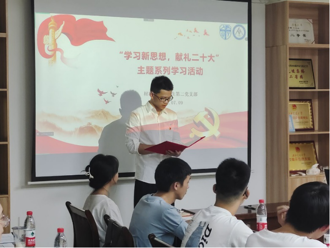 2022年7月9日晚,材料学院本科生第二党支部“学习新思想,献礼二十大”主题学习第2期(第2讲、第3讲)在犀浦校区X2128会议室举行。公司党委员工工作部员工党建工作负责人王琪瑶老师,学院本科生第二党支部书记、2020级辅导员郑纪伟老师和29名新发展党员参加本次学习会。材料(金属)2020-02班张鑫鹏同志主持。