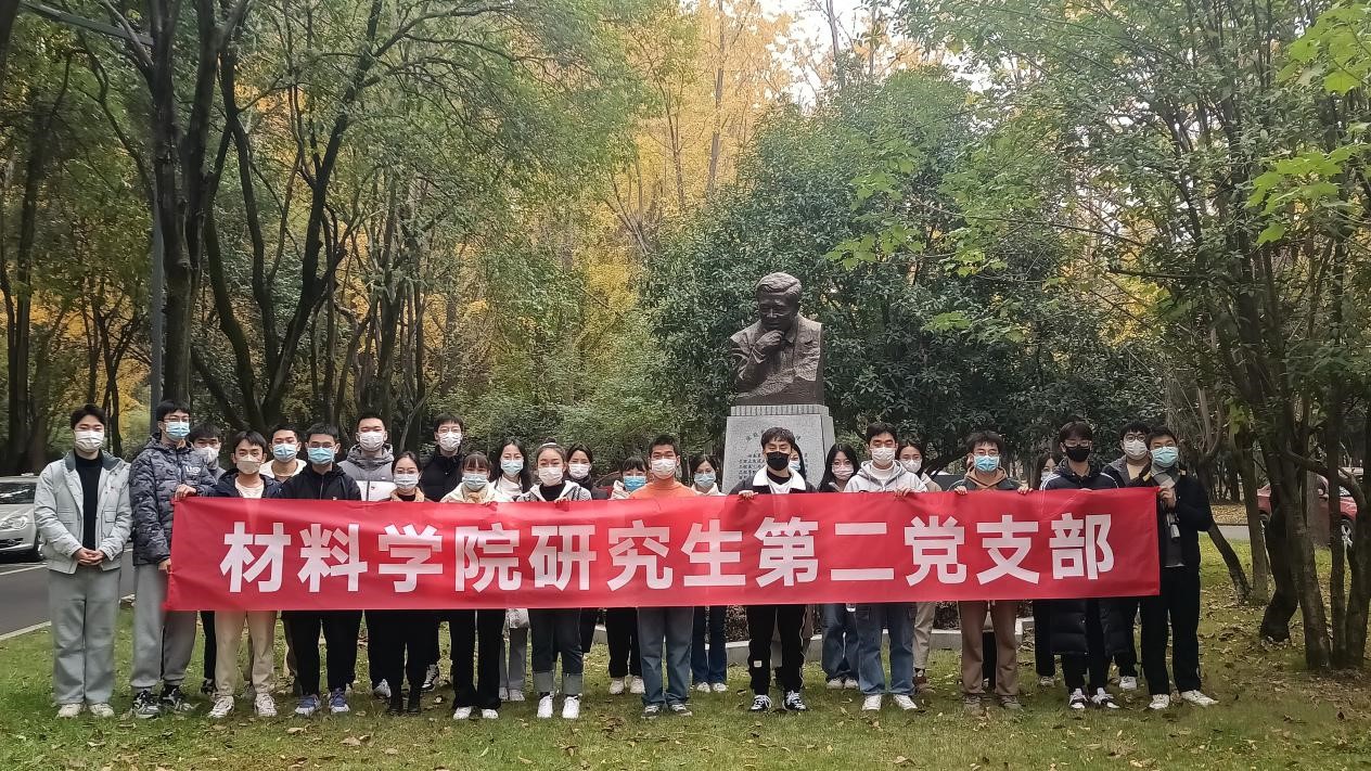 为深入学习贯彻习近平新时代中国特色社会主义思想、学习贯彻党的二十大精神,提高支部党员的爱国情怀、培养交大党员竢实扬华、自强不息的优良品质、锻炼交大材料人不畏艰苦、献身科学的奋斗精神,引领支部党员争做时代先锋,为谱写全面建设社会主义现代化国家崭新篇章提供强劲动力。2022年12月8日,材料学院研究生第二党支部全体党员和积极分子于3号教学楼下陈能宽院士雕像处开展学习党的二十大与科学家(陈能宽)精神、弘扬革命志士优秀文化的专题活动。