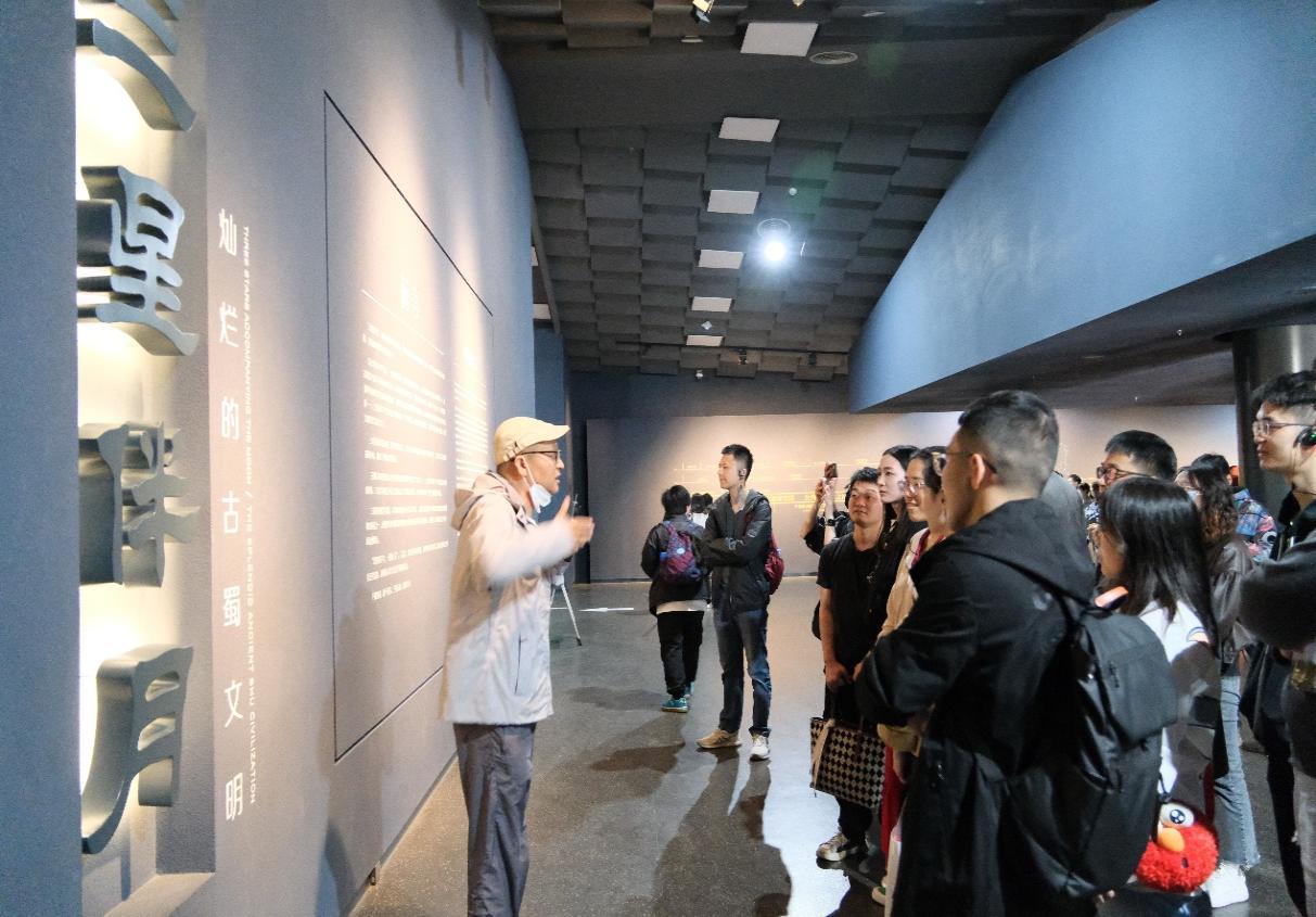 在“三星伴月”综合馆,讲解员以“蜀”字的演变开始,以小窥大,直观幽默地讲述了古蜀文明发展、强盛、变迁的历史。全体党员在讲解员的带领下对国宝级的三星堆文物有了更深层次的理解,也都被古蜀人民的智慧深深折服,对古蜀国的灿烂文明深受震撼。通过细品文物温度、研习古蜀历史,党员切身体会到古蜀“开放和谐”的发展理念、古蜀匠人巧夺天工的技艺和改造世界的勇气,理解了其作为长江上游文明杰出代表的典型意义。
