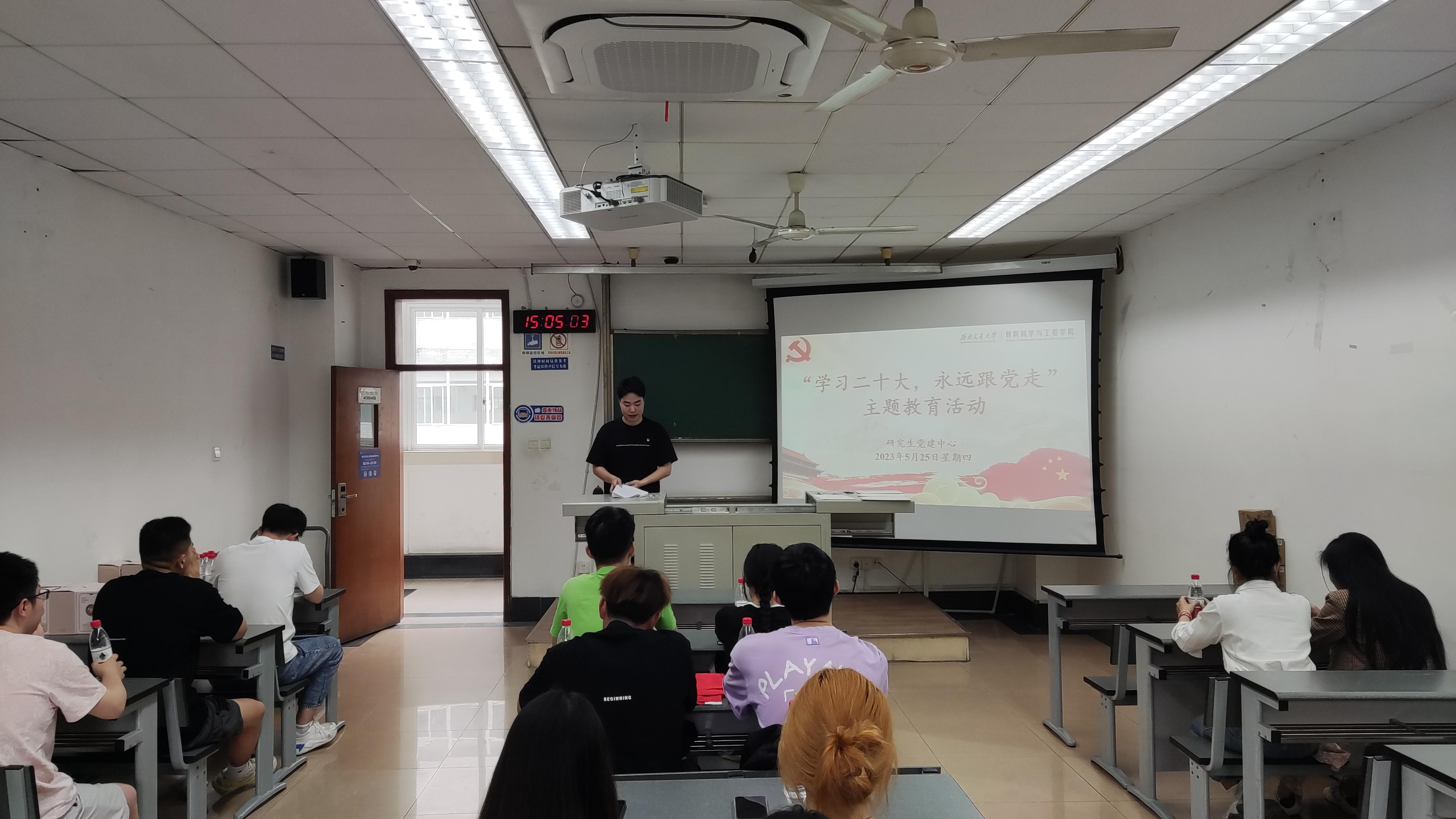 首先开展了“学习二十大,永远跟党走”的主题教育活动,徐励漪带领党建中心全体成员认真学习党的二十大精神,学思践悟,学以致用,理论联系实际,鼓励将所学的内容应用于党建工作中;并对党建中心一整年的工作进行总结,对全体成员表示感谢,希望选出的新一任干部能够再接再厉。