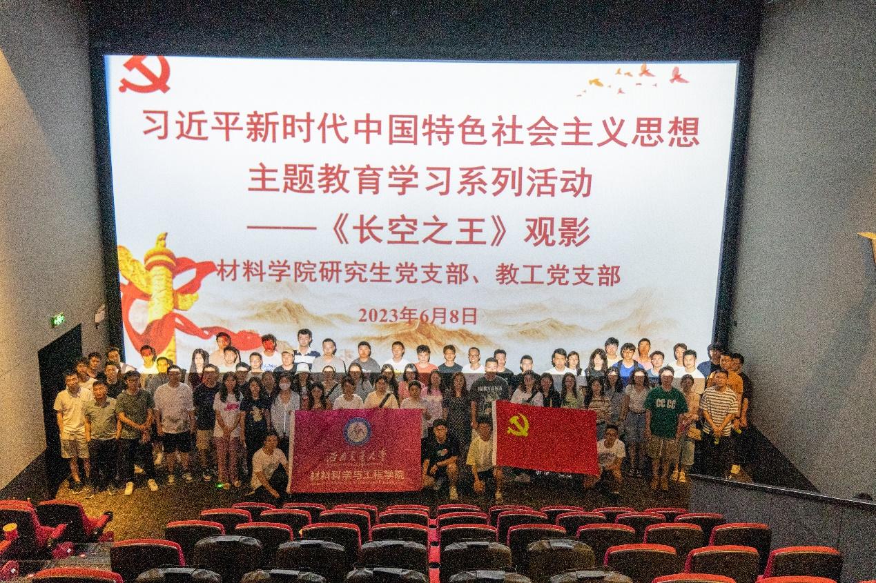 为牢牢把握主题教育总要求,深入学习贯彻习近平新时代中国特色社会主义思想,传承和弘扬了科学家们艰苦奋斗、勇于牺牲的伟大精神,激发学院师生爱党爱国热情。2023年6月8日,材料公司党委组织学院师生党员、入党积极分子、团学干部等百余人,集体观看红色影片《长空之王》。