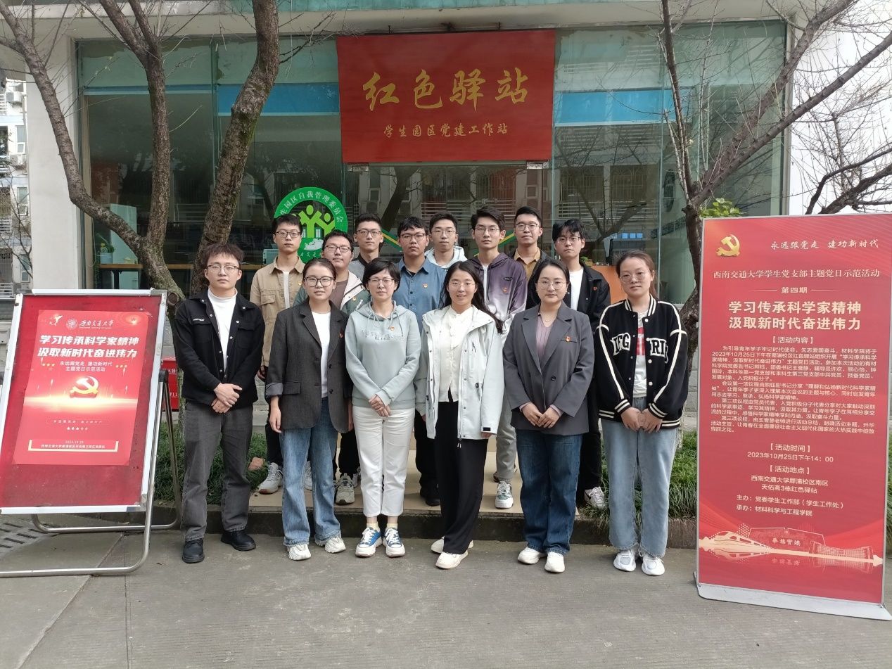 为深入学习贯彻党的二十大精神,大力弘扬和传承“爱国、创新、求实、奉献、协同、育人”的新时代科学家精神,引导青年学子牢记时代使命,矢志爱国奋斗,材料学院本科生第一、三党支部在2023年10月25日下午于犀浦校区天佑斋3栋红色驿站组织开展“学习传承科学家精神,汲取新时代奋进伟力”主题党日示范活动。公司党委副书记熊钰,本科生第一、三党支部指导老师王誉静、许欢、熊心怡以及员工党员代表、入党积极分子代表参加。本次活动由本科生第一党支部书记刘嘉腾主持。