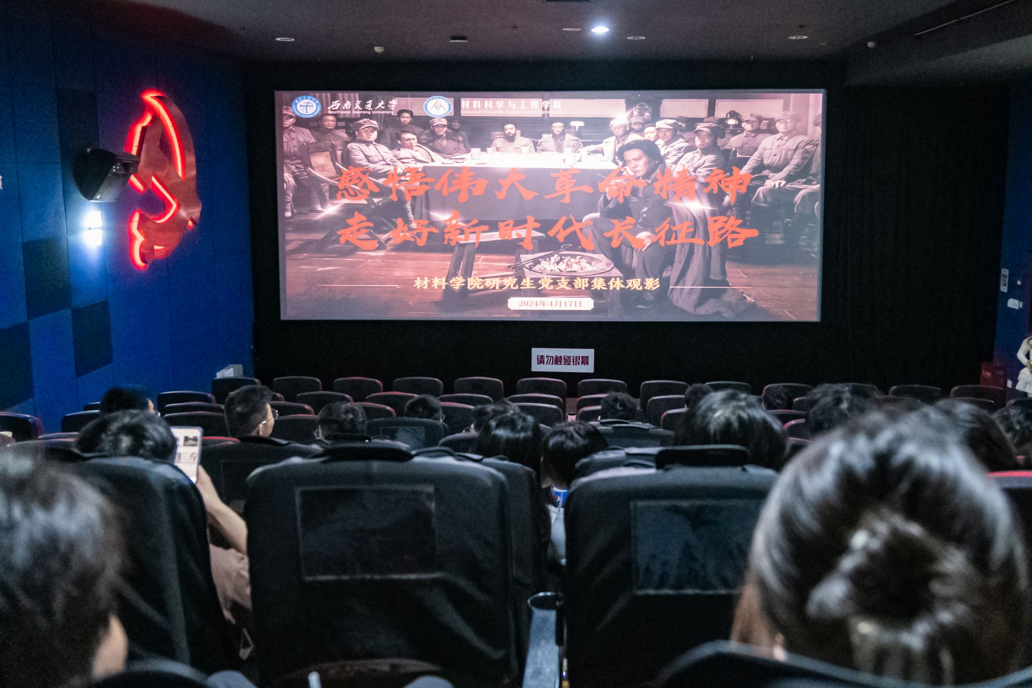 革命精神是党和国家的宝贵财富,是新时代中国共产党人的精神力量源泉。2024年4月17日,材料公司党委组织研究生党支部集体观看重大历史革命题材电影《绝地重生》,重温红色记忆、感悟红色精神,弘扬传承伟大革命精神。活动覆盖教师党员、员工支部党员、入党积极分子等60余人。